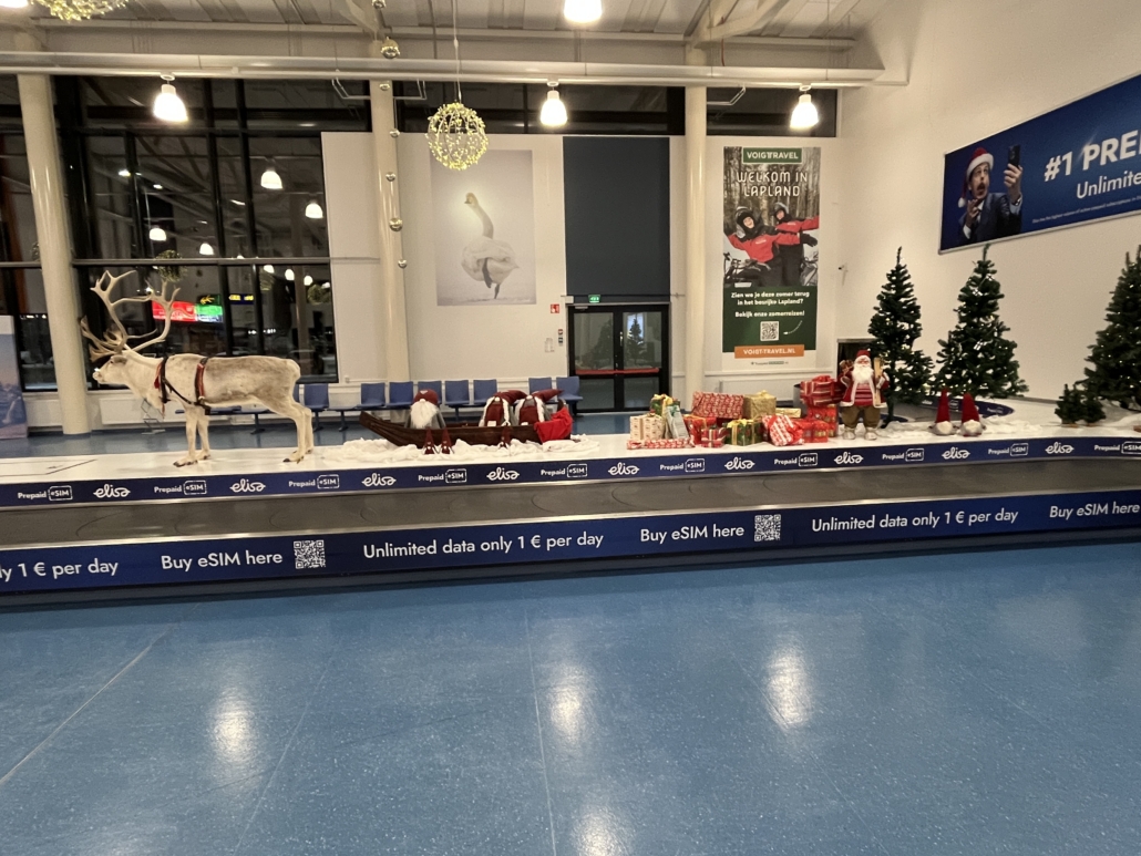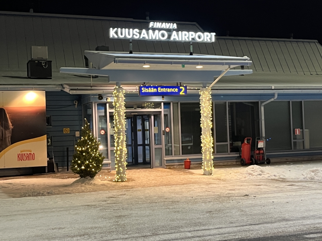 Die Gate-Agentin erklärt uns, dass der ursprüngliche Flieger einen Defekt hat und wir ein Ersatzflugzeug erhalten. Neuer Abflug ist um 18:35 Uhr. Die 19 Passagiere werden mit dem Bus zum Flugzeug gebracht. Alle sitzen im hinteren Teil der Maschine. Nach etwa 1 Stunde und 35 Minuten landen wir in Kuusamo. Das Flugzeug hält direkt vor dem Flughafengebäude. Kurz darauf kommen auch unsere Koffer an.