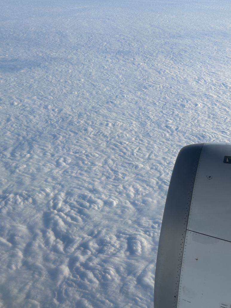 Als wir schliesslich am Gate warten, heisst es, dass das Flugzeug noch vorbereitet werden müsse. Wir haben etwa eine halbe Stunde Verspätung, die später wieder aufgeholt wird. Rund 45 Minuten vor der Landung beginnt der Kapitän mit dem Sinkflug und fliegt gefühlt in Zeitlupe weiter – vermutlich war die Landeerlaubnis in Zürich noch nicht erteilt.