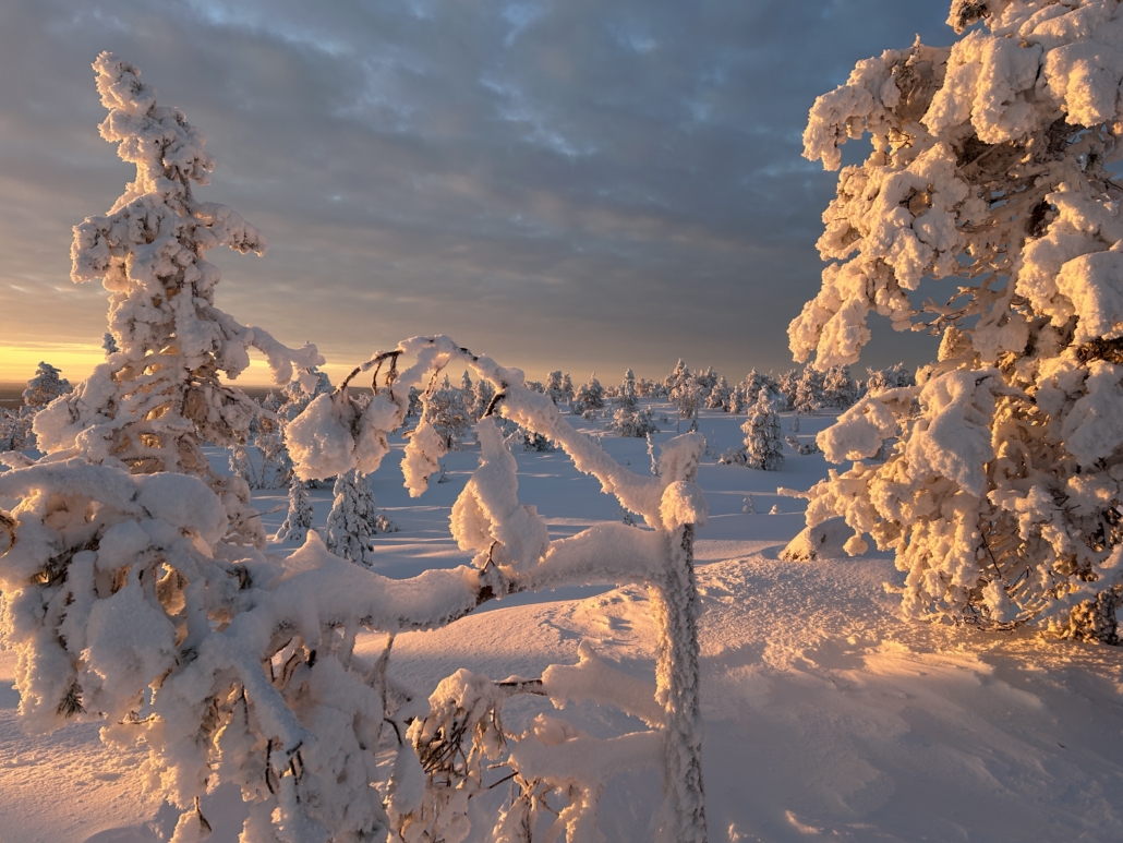 Für heute ist wolkenloser Himmel angesagt. Die Sonne geht um 11 Uhr auf, also müssen wir uns beeilen, um rechtzeitig im Riisitunturi-Nationalpark zu sein.