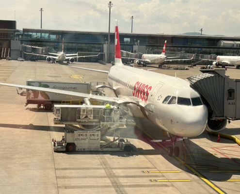 Beim Check-In 1 laufen wir erst in die falsche Richtung, bis wir eine Swiss-Mitarbeiterin nach dem Business-Check-In fragen. Nach kurzem Anstehen sind unsere Koffer aufgegeben.