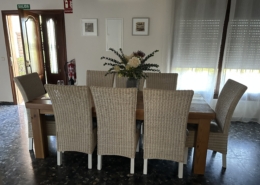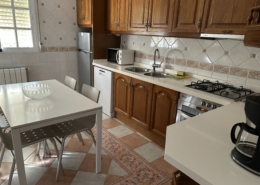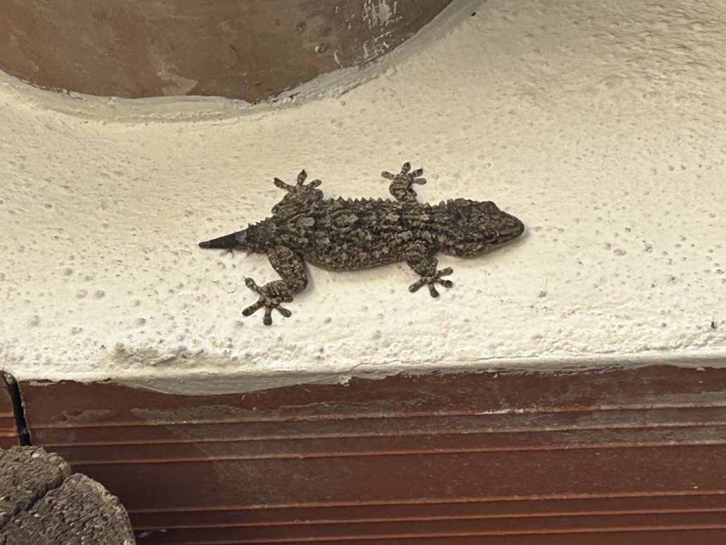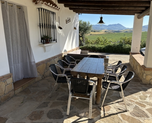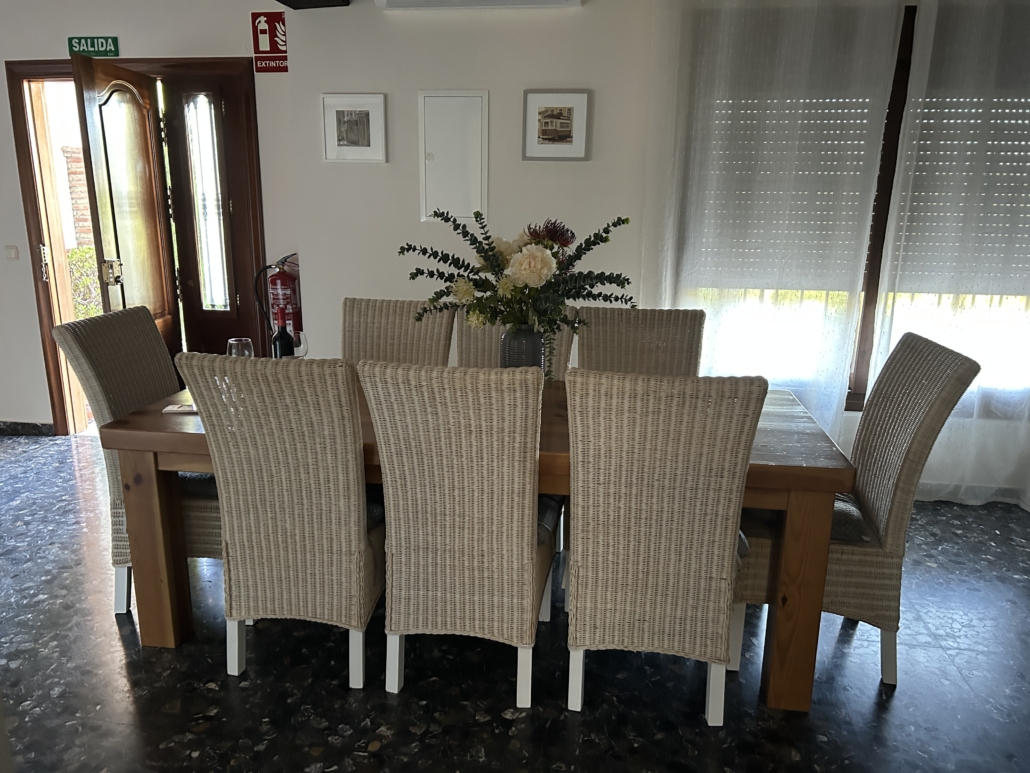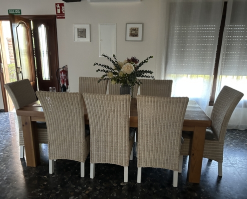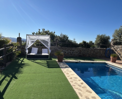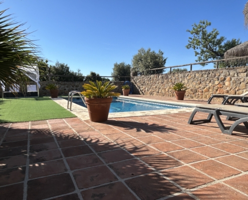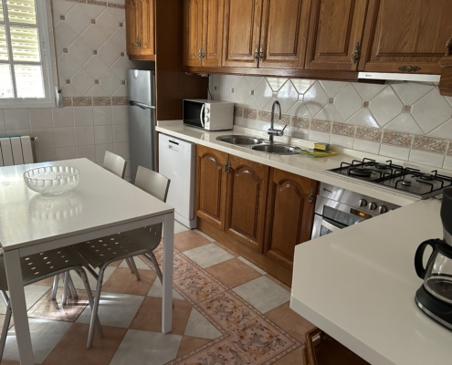 Die Vermieterin kommt um 8:30 Uhr um den Pool zu reinigen. Wir frühstücken gerade.