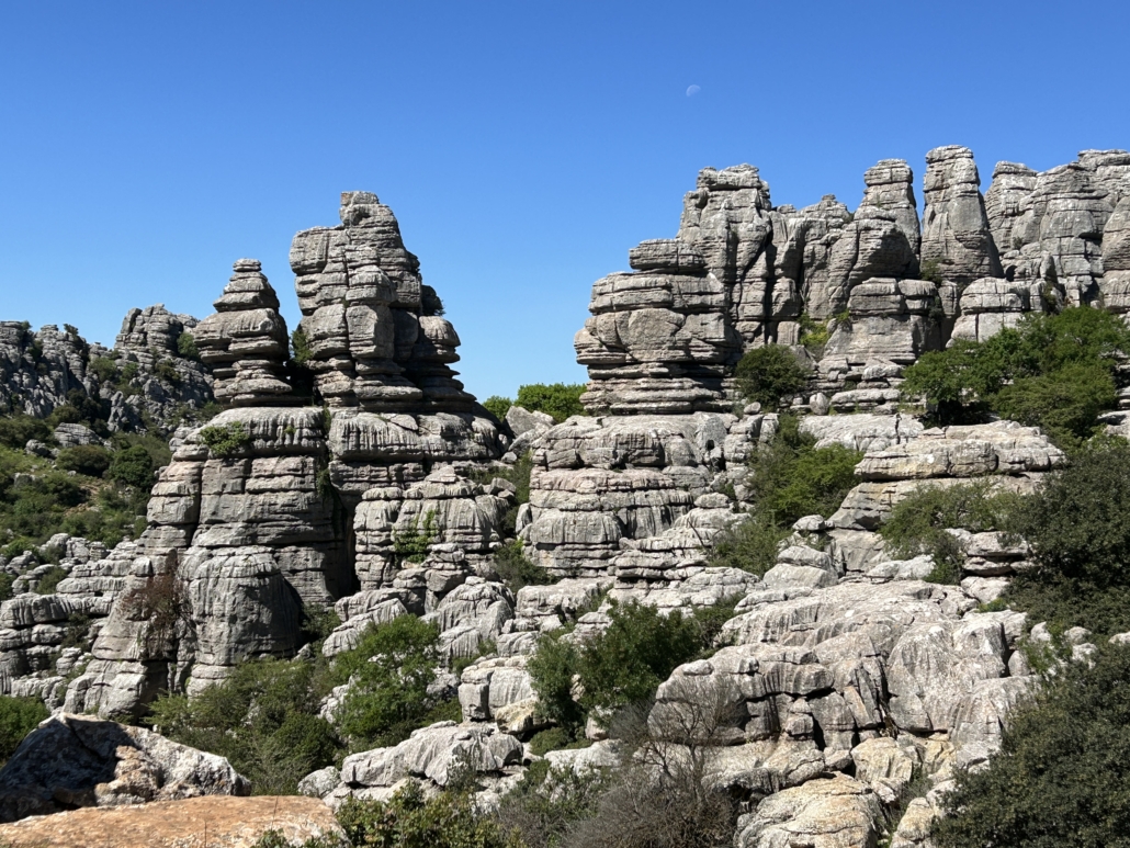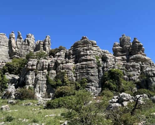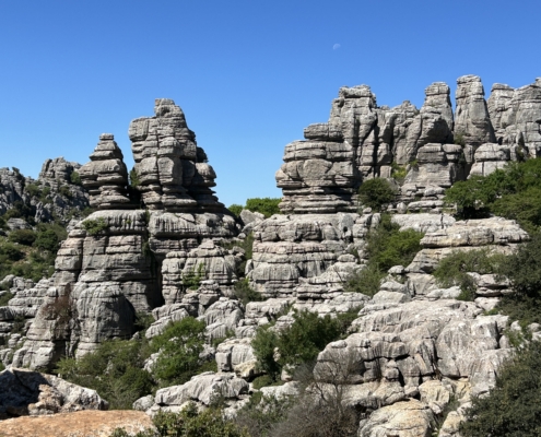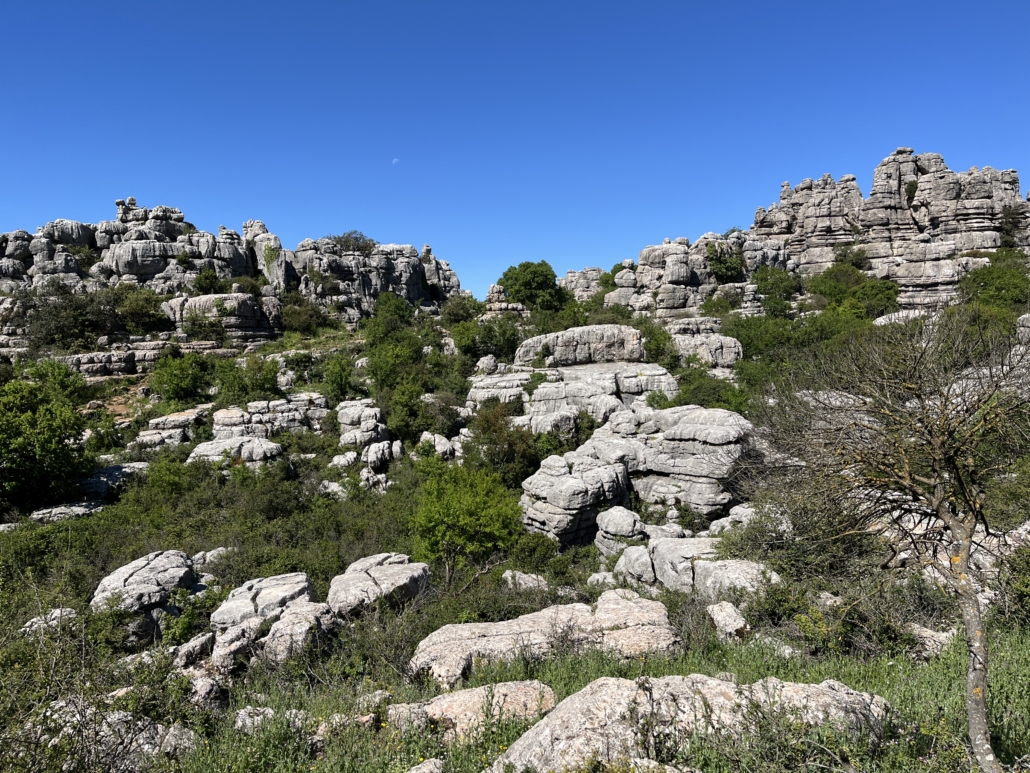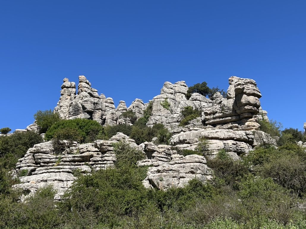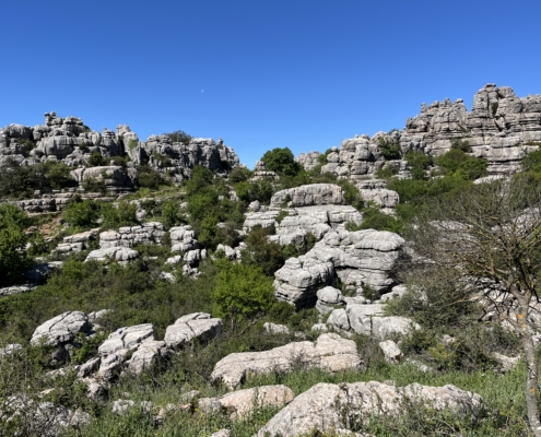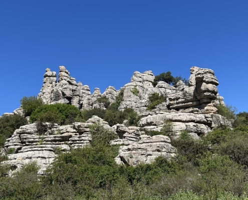 Heute steht die kleine Rundwanderung in «El Torcal» (nur 6 km entfernt) auf dem Programm. Ohne Jacken ist es auf 1200 m Höhe kühl und windig. Beim Wandern wird uns schnell warm. Immer wieder versperren Wanderer den schmalen Pfad beim Fotografieren. Wir überholen zügig, danach haben wir den Weg für uns.