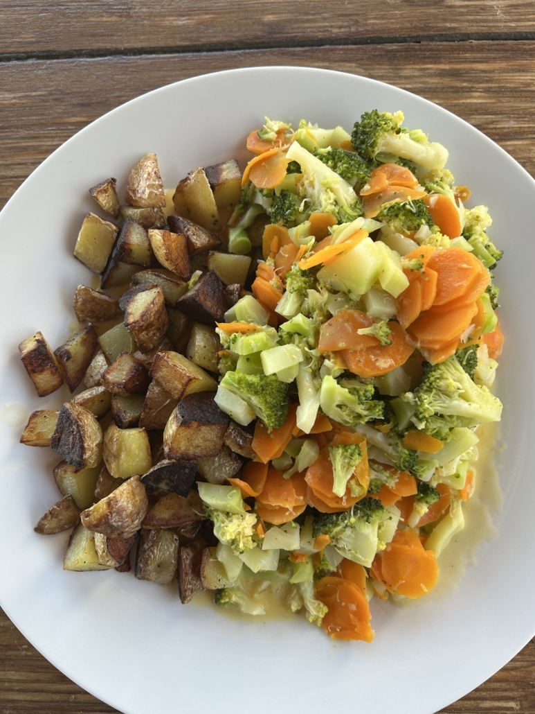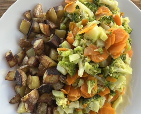 Znacht: Brokkoli Möhren in Käsecreme mit Bratkartoffeln