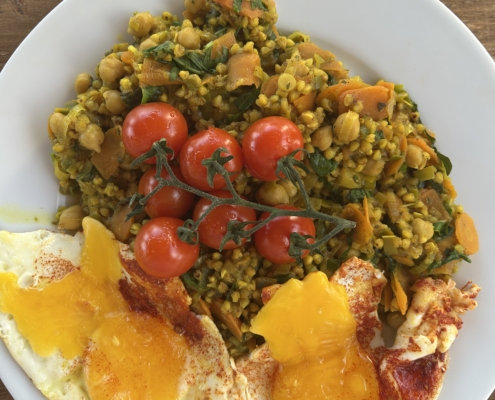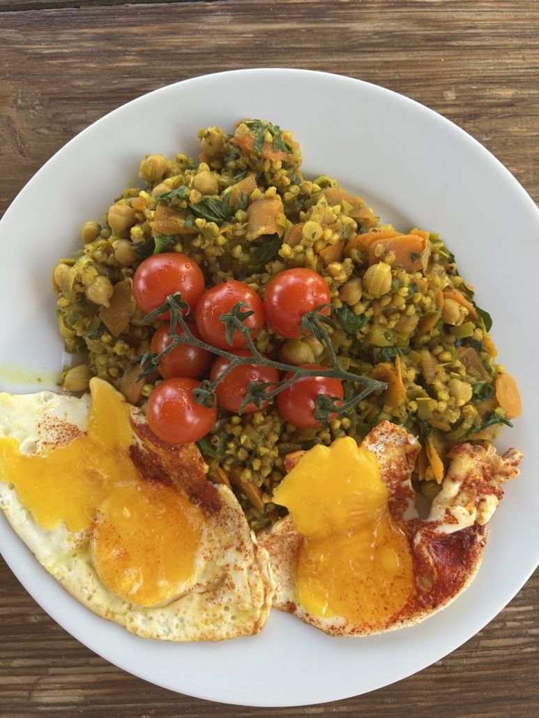 Znacht: Kräuter Gemüse Hirsotto mit Spiegelei