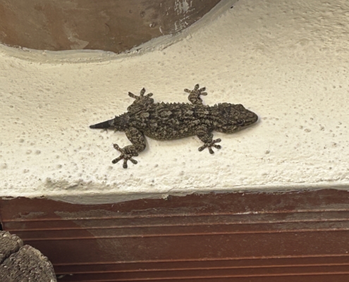 Das Frühstück geniessen wir draussen auf der Terrasse. Es ist windig und etwas frisch. Danach packen wir die Koffer aus und lassen den Tag ruhig angehen.