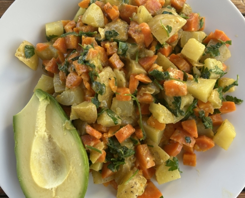 Znacht: Karotten-Kartoffel-Gemüse mit Avocado