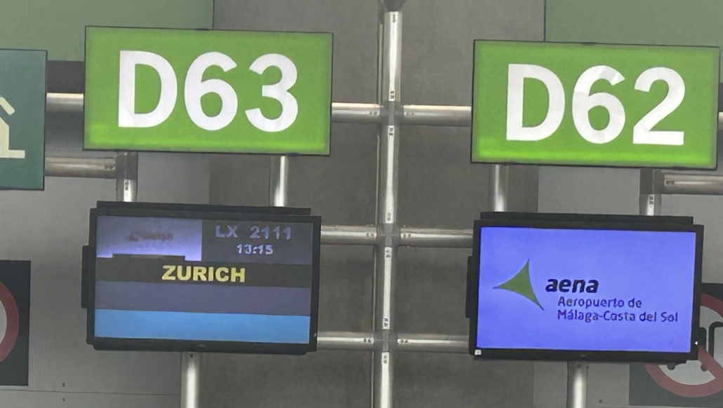 Rückflug: Swiss LX 2111 Abflug 13:15 ab Malaga – 15:50 Ankunft Zürich
