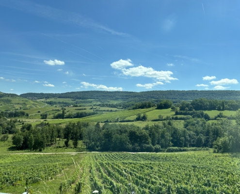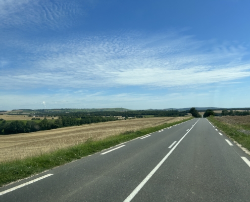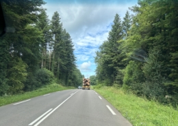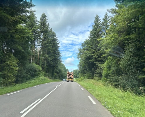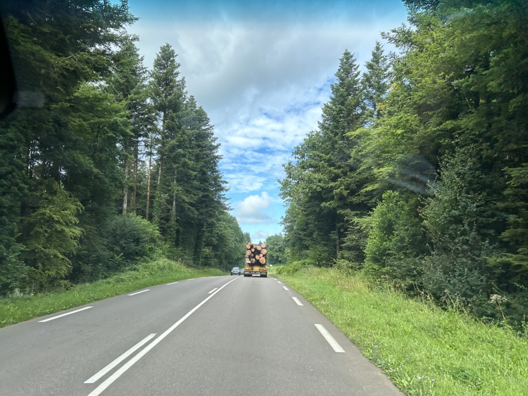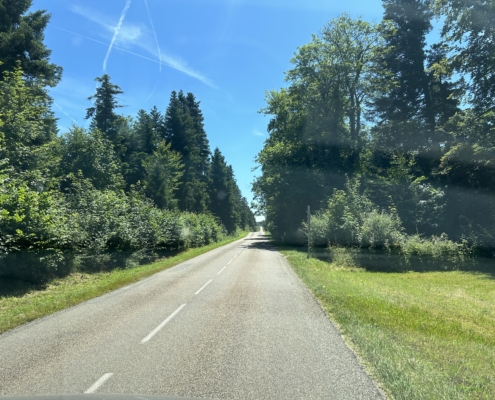 Ab 8 Uhr kann man das bestellte Baguette abholen. Dann geht es das letzte Stück Richtung Heimat. Wir fahren durch den französischen Jura durch eine schöne Landschaft mit wenig Verkehr.