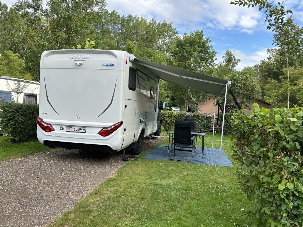 Wir starten um 8:10 Uhr Richtung Gurmels zum Tanken. (60,62 l à 1.90). Danach geht es weiter über Orbe nach Frankreich. In der Nacht hatte es noch geregnet. Auf der ganzen Fahrt ist der Himmel bewölkt aber es bleibt trocken und warm. Nach mehreren Pausen kommen wir in die Vororte von Paris mit einer 4-spurigen Autobahn und der Verkehr nimmt stark zu. Bald haben wir auch diese Passage gemeistert und nähern uns dem Campingplatz Le Bois fleuri ***. Ankunft 17:20 Uhr.