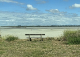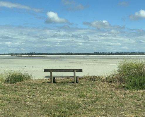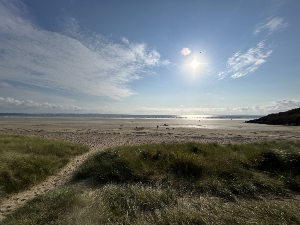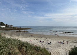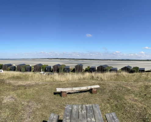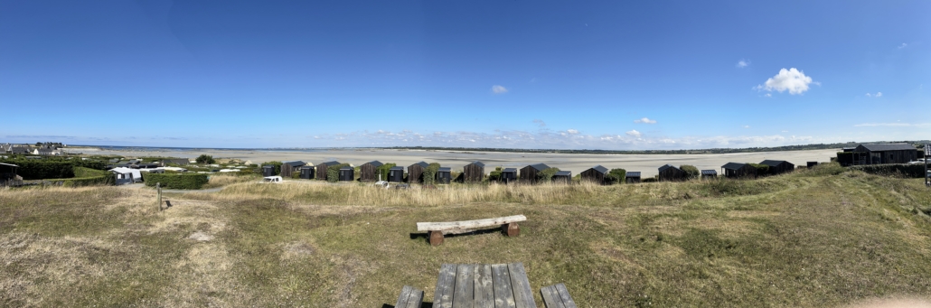 Auch dieses Mal konnten wir Baguette (une tradition) bestellen. Der Himmel ist bewölkt, zwischendurch kommt die Sonne durch. Bei Flut gegen 16 Uhr ein erfrischendes Bad im Meer und schon ist wieder Zeit fürs Znacht.
