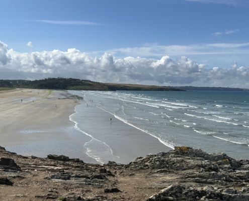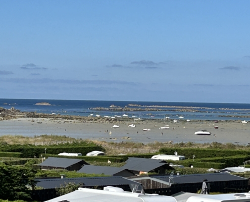 Um 16 Uhr treffen wir auf dem Camping La Plage **** de Tréguer in Plonevez-Porzay ein und es beginnt wieder zu regnen. Wir installieren uns und schauen uns mal den Strand bei Ebbe an.