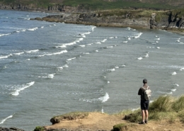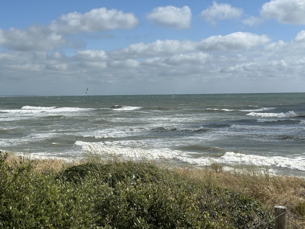 Wir laufen ans Meer. Dies hat grosse Wellen und ein kleiner Sandsturm pickst.