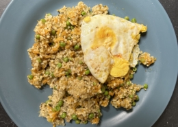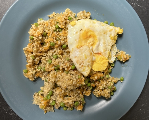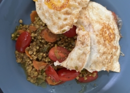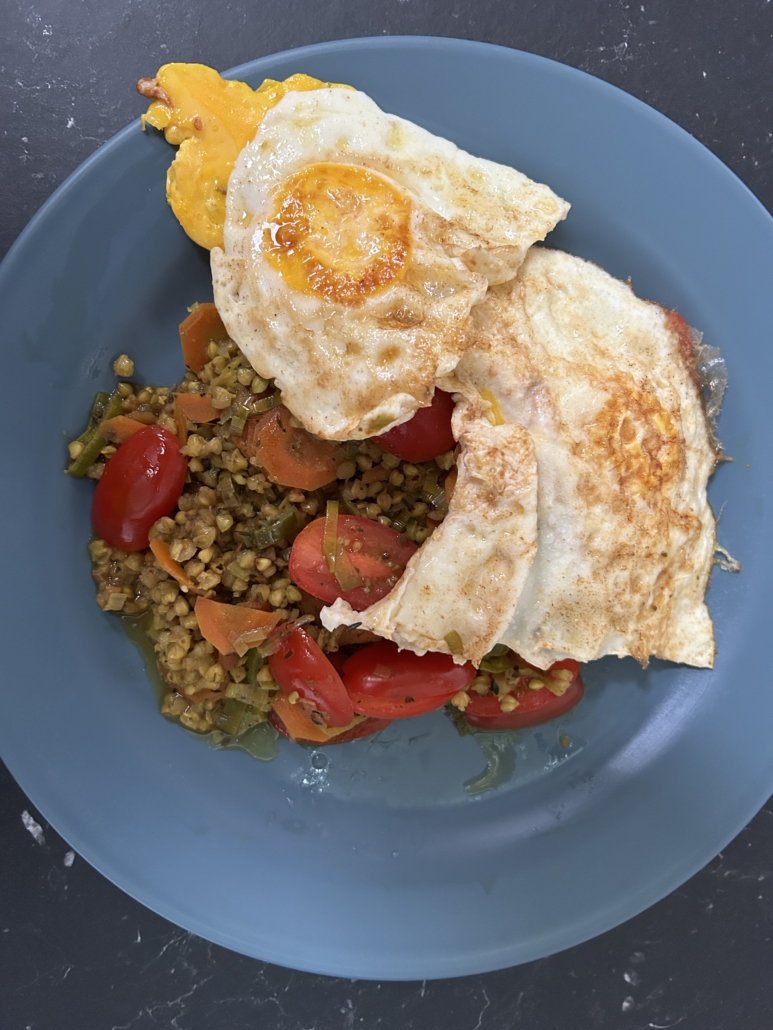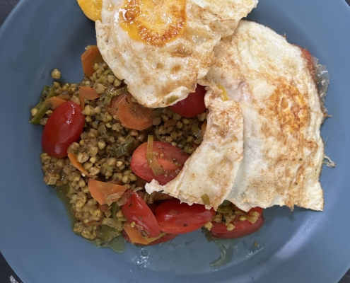 Hymi kann sich nicht in die Waagrechte bringen und wir sind 2% seitwärts schief. Beim Kochen läuft das Eiweiss auf eine Seite.