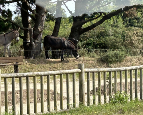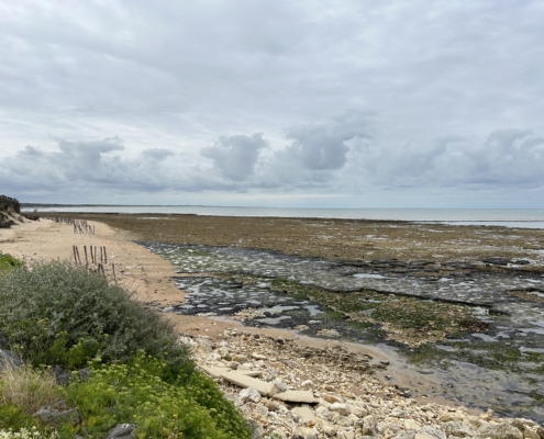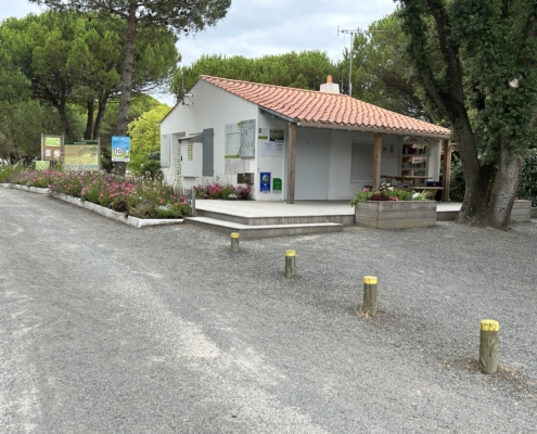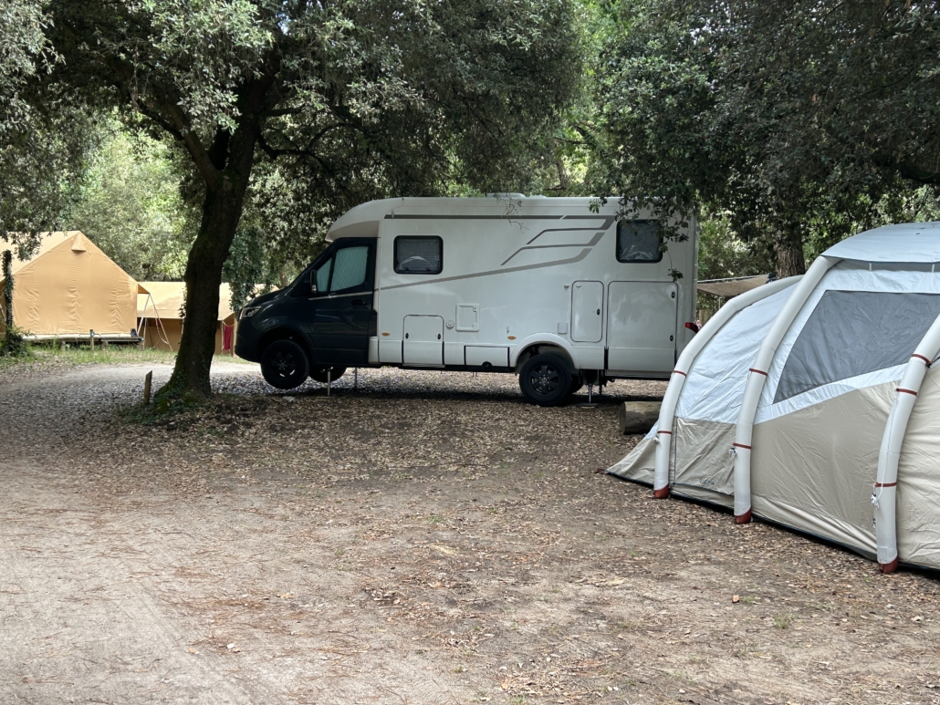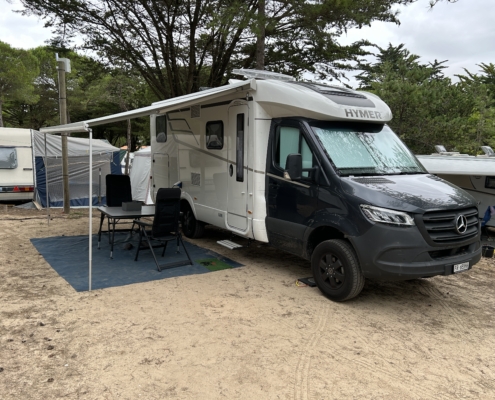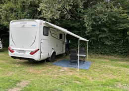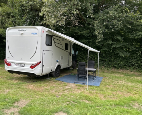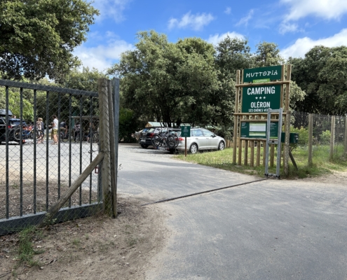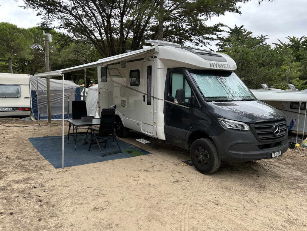 Der Camping Huttopie auf der Insel Oréron *** liegt in einem Waldstück. Unser Stellplatz ist sehr schattig und es hat Äste, die auf den Platz runter hängen. Wir brechen einige ab, dass wir überhaupt die Store runterlassen können. Die Internetverbindung ist sehr eingeschränkt.