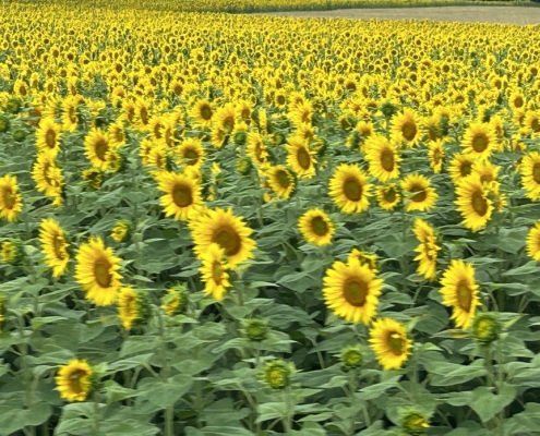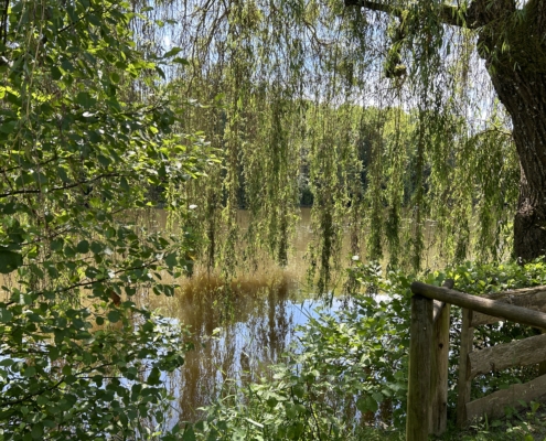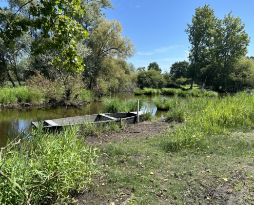 Die heute auf dem Programm stehende Teichlandschaft verpassen wir bei der richtigen Ausfahrt. Wir müssen die nächste nehmen und etwas zurückfahren. Am Ufer sind viele Ruderboote vertäut. Aber alle sind voller Wasser. Die Spazierwege sind matschig, so dass wir nach einer kurzen Pause weiterfahren.