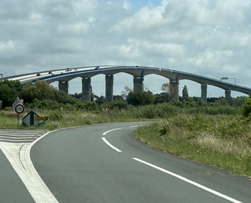 Um 9:10 Uhr sind wir abfahrbereit. Beim nahe gelegenen Intermarché (61,92 l à 1.672) tanken und dann wieder auf die Mautstrasse. Die Fahrt Richtung Brest ist landschaftlich eher langweilig und der Verkehr läuft flüssig obwohl viele Ferienhungrige unterwegs sind. Ca. 200 km vor dem Ziel kommen wir immer wieder in kurze Staus.