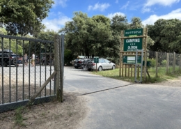 Den Campingplatz finden wir nicht auf Anhieb, weil an der Zufahrt ein Schild angebracht ist, nur 2,20 m Höhe. Also kehren wir um und müssen feststellen, dass wir doch richtig waren. Die Beschränkung kommt erst nach dem Campingplatz.