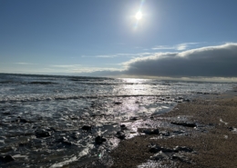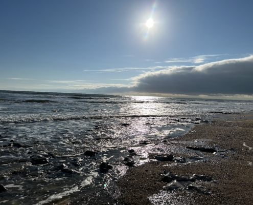 Wir besuchen den Strand – die Ebbe hat Höchstsand und das Wasser ist weit draussen.