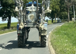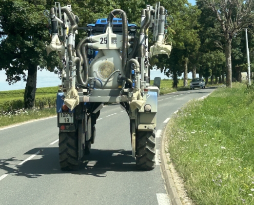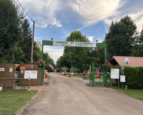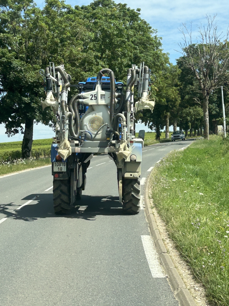 Nachdem wir abfahrtbereit sind, holen wir das bestellte Baguette ab, das erst ab 9 Uhr erhältlich ist. Wir fahren ca. 70 km bis zur ersten Pause und machen Znüni/Zmittagpause. Unterwegs müssen wir komische Gefährte überholen. Diese werden von den Weinbauern verwendet. Wir fahren 180 km ohne Stop bis zum Camping les Coullemières *** in Vermenton . Wir sind 3 Minuten zu früh, er öffnet erst um 14 Uhr.