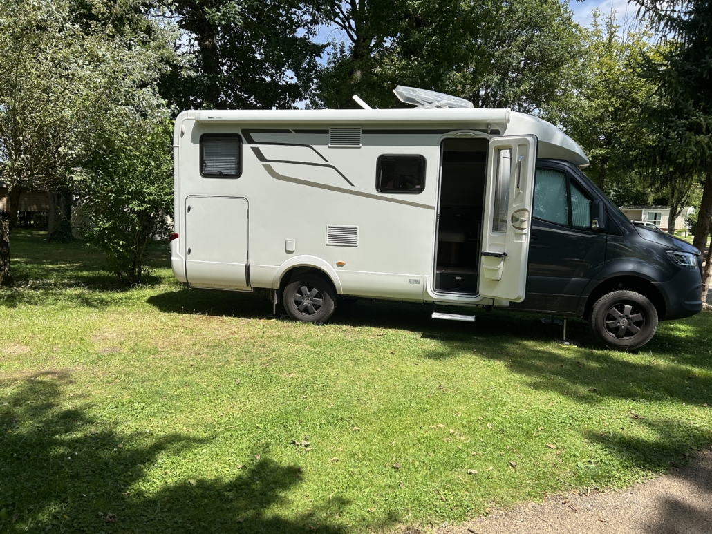 Unser Ziel ist heute der Camping Moulin de Piot *** in Chéniers en Creuse. Am Empfang warten wir 20 Minuten, bis wir eingecheckt sind. Dann will er auch noch zu viel Geld, da er die Anzahlung übersehen hat. Wir können unserem Platz aussuchen. So ziemlich alle Plätze sind schief.