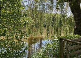 Heute gibt es kein Baguette. Irgendwie sind wir heute zu faul und hängen vor dem Camper herum. Am Nachmittag machen wir uns dennoch auf den «Wanderweg», der an der Rezeption auflag. Er ist 7 km lang. Aber am Schluss müsste man über den Fluss, der momentan Hochwasser hat und die Brücke ist nicht begehbar. Deshalb kürzen wir die Strecke ab.