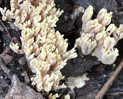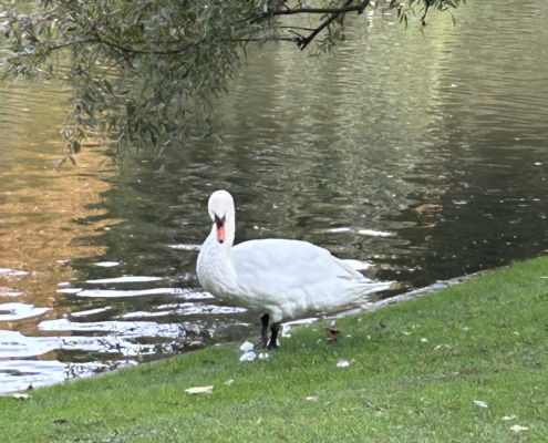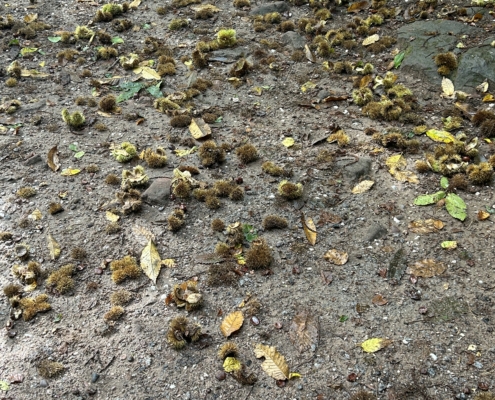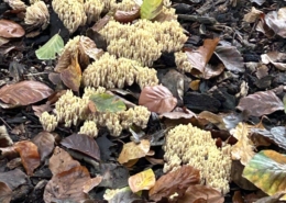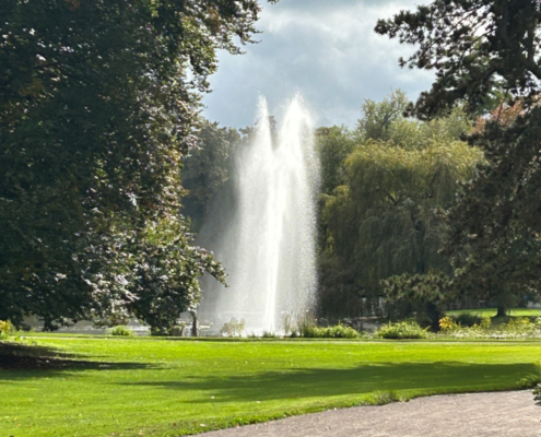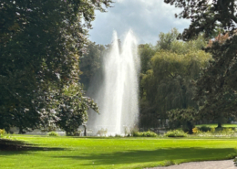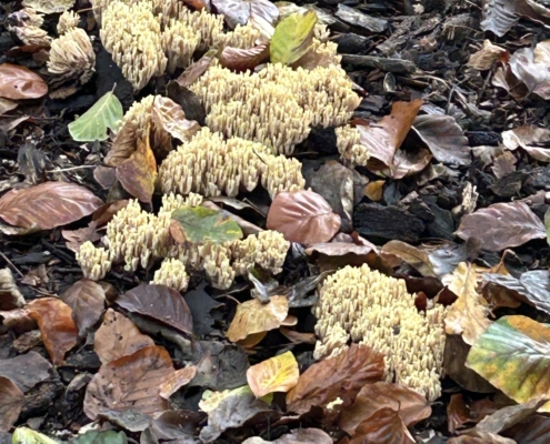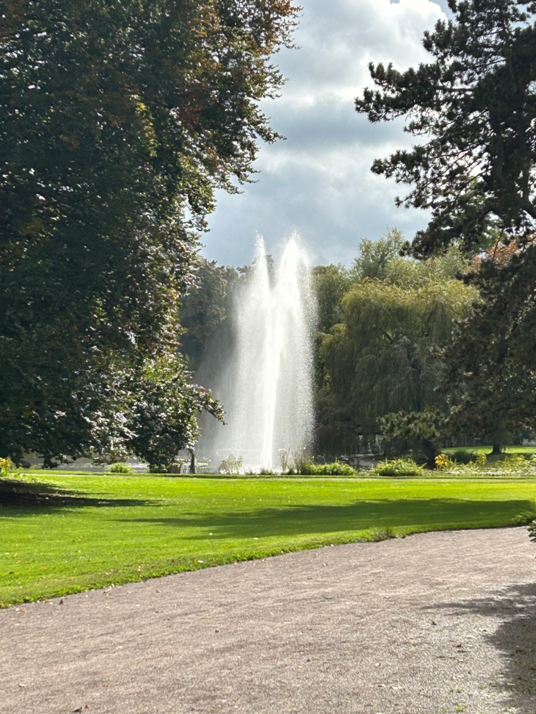 Im Herzen des eleganten Wohnviertels Orangerie befindet sich der gleichnamige, blumengeschmückte Park mit Spazierwegen, einem See zum Bootfahren, Spielbereichen und der Veranstaltungsstätte Pavillon Joséphine. Der Park wird zurzeit auf den Winter vorbereitet, aber die Ruhe und die Natur sind der perfekte Start für unsere Ferien. Auf dem Waldboden sehen wir eine Pilzart, die wie Korallen aussehen.