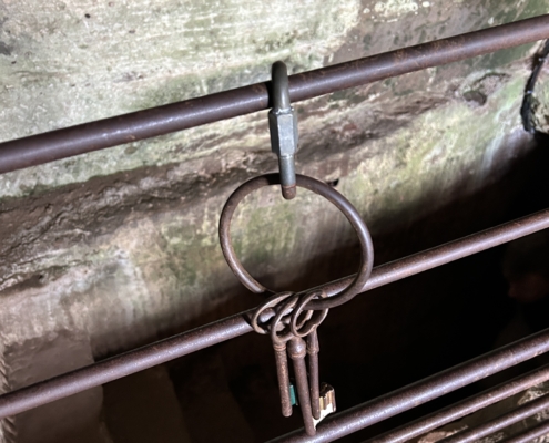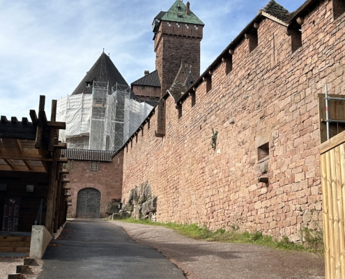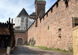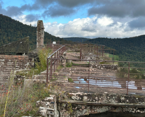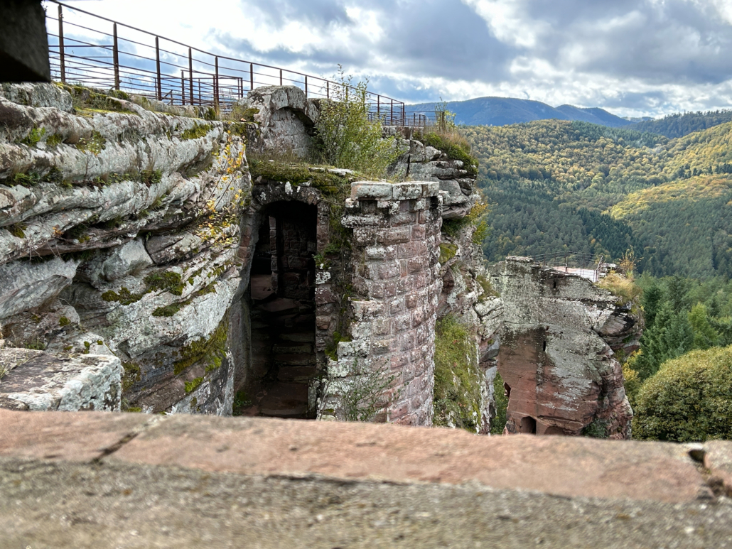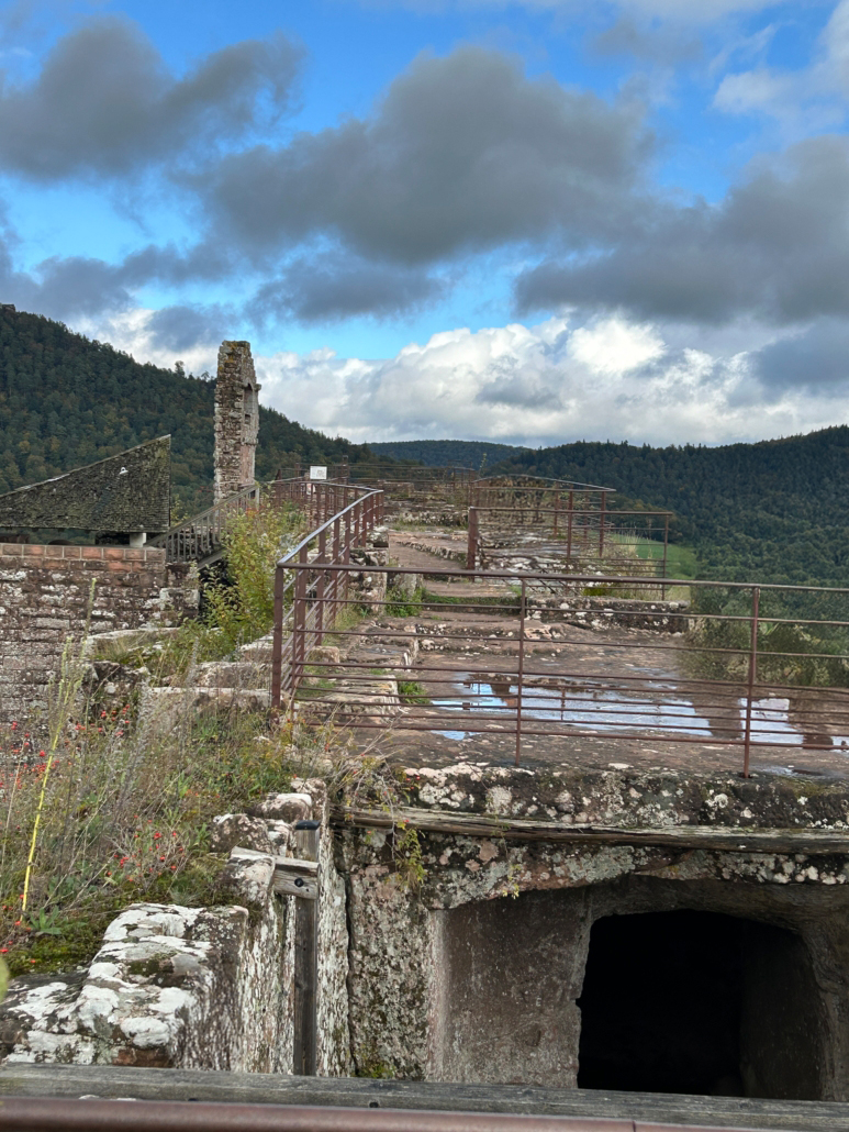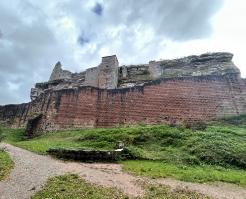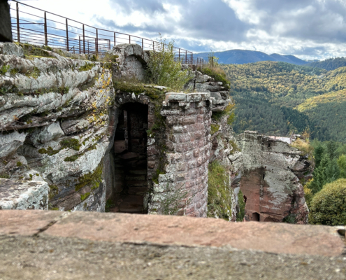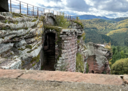 Dann geht es weiter zur Burg Fleckenstein, Nahe der deutschen Grenze. Wir parkieren im Wald. Durch den vielen Regen in den letzten Tag, ist alles etwas sumpfig. Ein kurzer Wanderweg durch den Wald führt zur Burgkasse (Eintritt € 5.- pro Person) und weiter bis zum Burgeingang. Es ist spannend die verschiedenen Abteile der Burg zu erkunden.