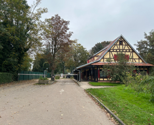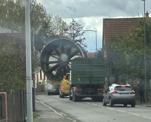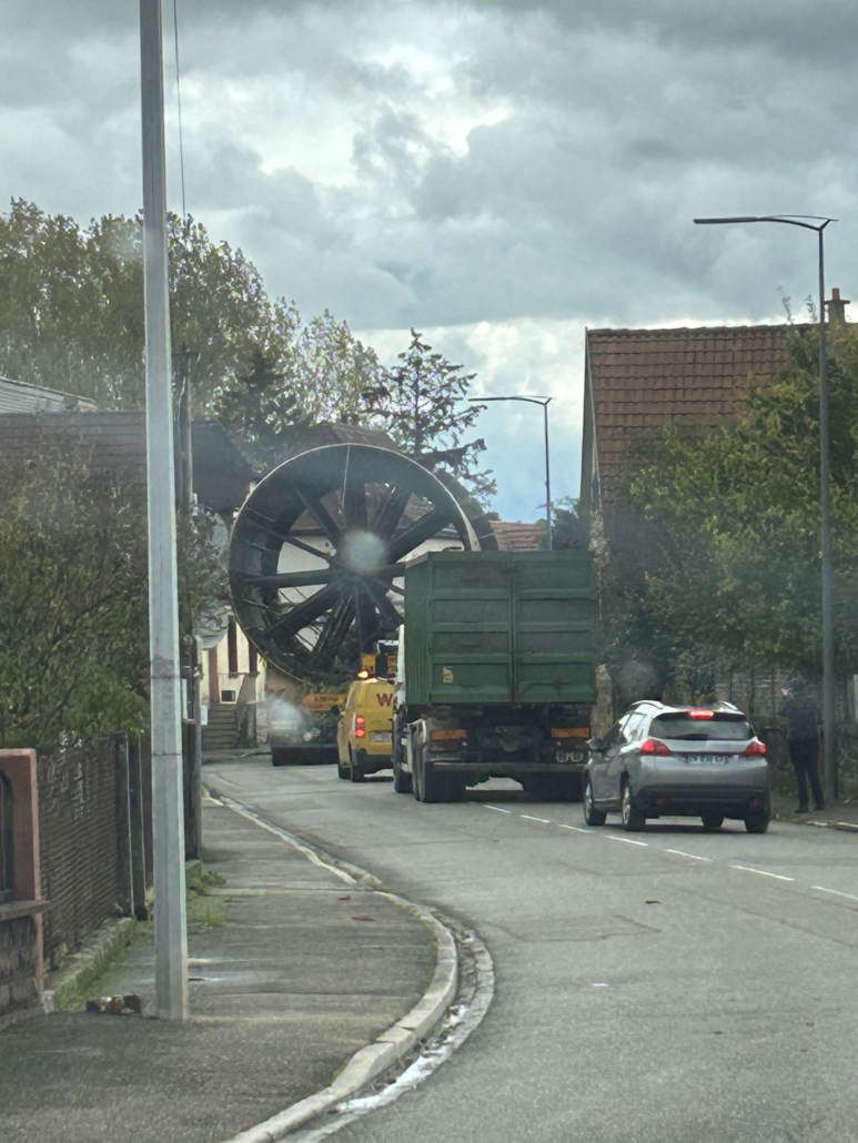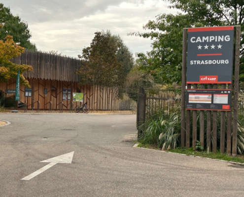 Wir sind jetzt nördlich von Strasbourg und müssen rund 50 km zurückfahren. Schon bald stehen wir auf der Strasse still. Als viele Autos umdrehen, sehen wir, was den Stau verursacht. Ein Spezialtransport mit einer Turbine oder ähnlichem. Wir fahren eine Weile hinterher. Nach etwa ½ Stunde suchen wir eine Umfahrung. Schliesslich erreichen wir den Camping de Strasbourg **** um 17 Uhr. Der Stellplatz ist etwas feucht aber der erste Tag ist geschafft.