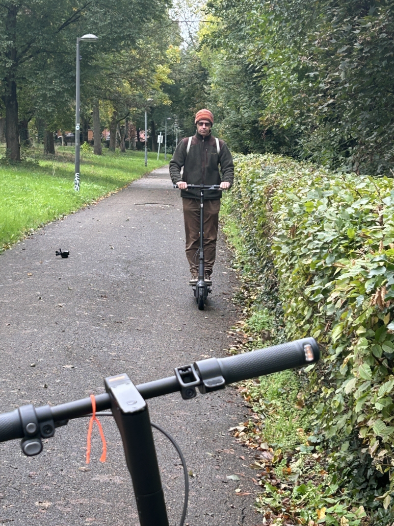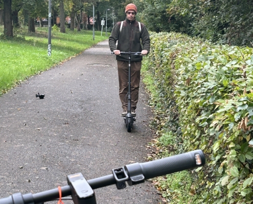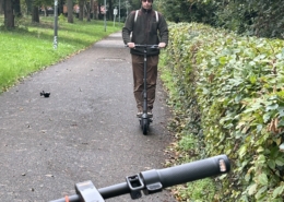 Wir entscheiden uns, statt des Trams unsere Trottinetts zu nehmen da das Wetter gut ist.