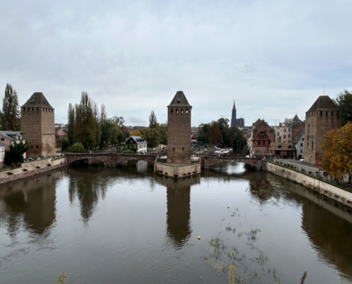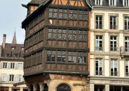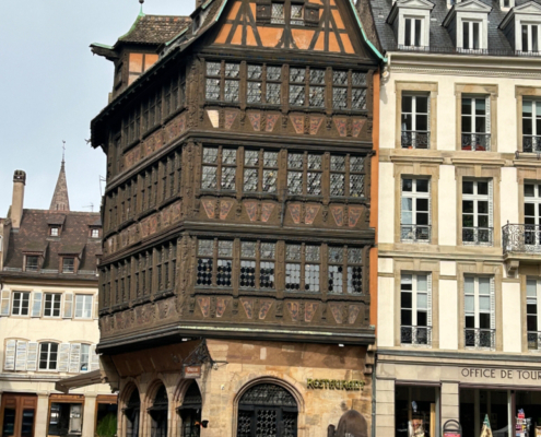 Das Haus Kammerzell gilt als eines der schönsten Fachwerkhäuser der deutschen Spätgotik. Das Haus steht auf der Nordseite des Münsterplatzes (Place de la Cathédrale) In «La Petite France» schlendern wir durch die engen Gassen und gelangen zur Barrage Vauban. Diese überqueren wir und bald darauf finden wir ein Kaffee. Dann laufen wir zurück zur Haltestelle «Homme de Fer». Auch dieses Mal klappt es mit Billett lösen nicht, da wir kein Kleingeld haben. Es war sehr kalt.