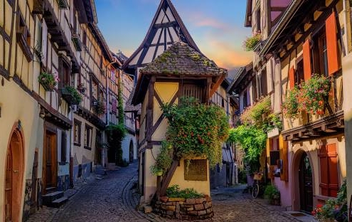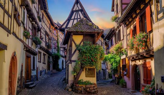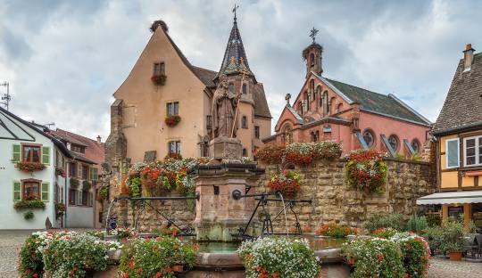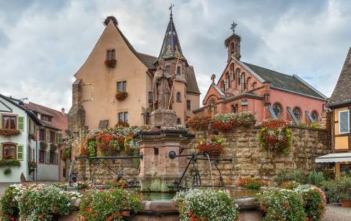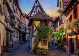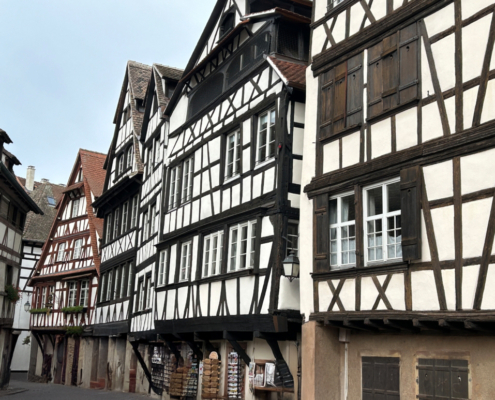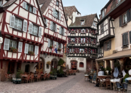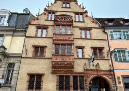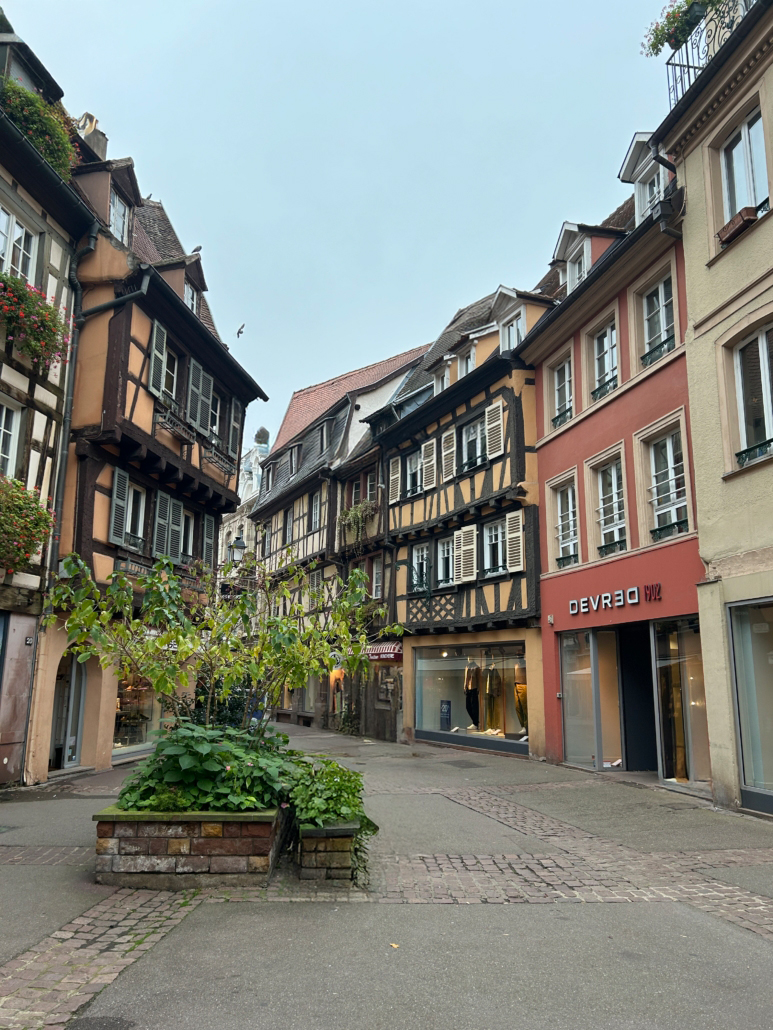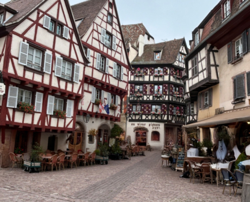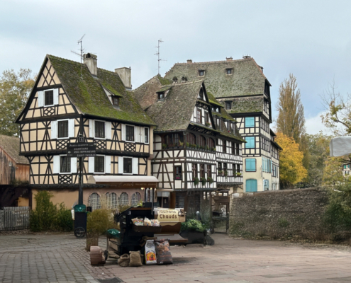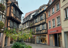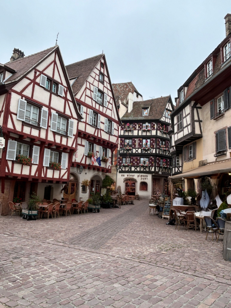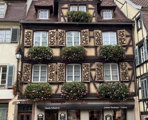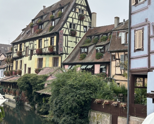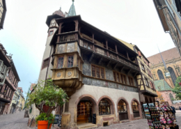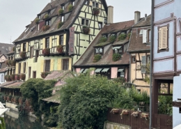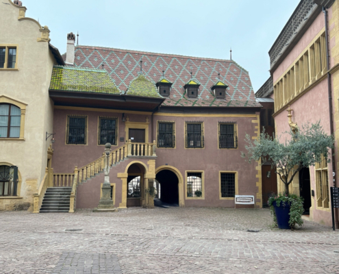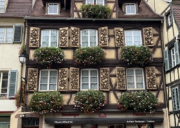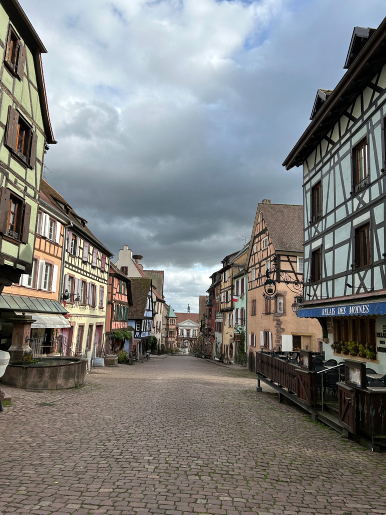 Dann fahren wir weiter nach Eguisheim. Dort gibt es einen riesigen Parkplatz mit Strom für Wohnmobile. Wir spazieren über die gepflasterten Strassen von Eguisheim, das zu den schönsten Dörfern Frankreichs gehört. Ein charmantes kleines Dorf, typisch elsässisch mit den alten Gebäuden und ihren Spitzdächern, bunten Farben und Fachwerkfassaden.
