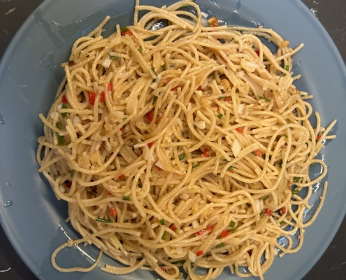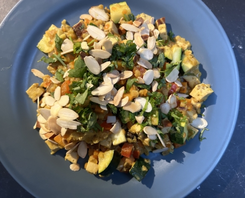 Danach geht es zurück zum Campingplatz. Wir holen den Teppich, Tisch und Stühle hervor und setzen uns noch etwas in die Sonne. Es ist sogar genügend warm, dass wir draussen essen können.