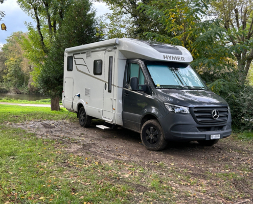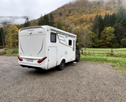 Schon bald erreichen wir die Schweiz. Je näher wir Grauholz kommen um so mehr regnet es. Auf der Entsorgungsstelle steht schon ein Camper und nach uns steht auch schon einer an. Wir werden ziemlich nass. In Lanthen ist der Tank fast leer und wir tanken für den Service nur 51.42 l à 1,75 = CHF 90.-