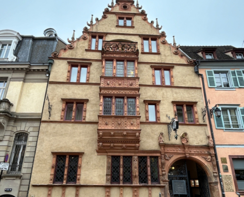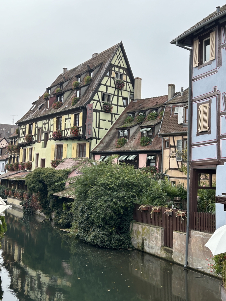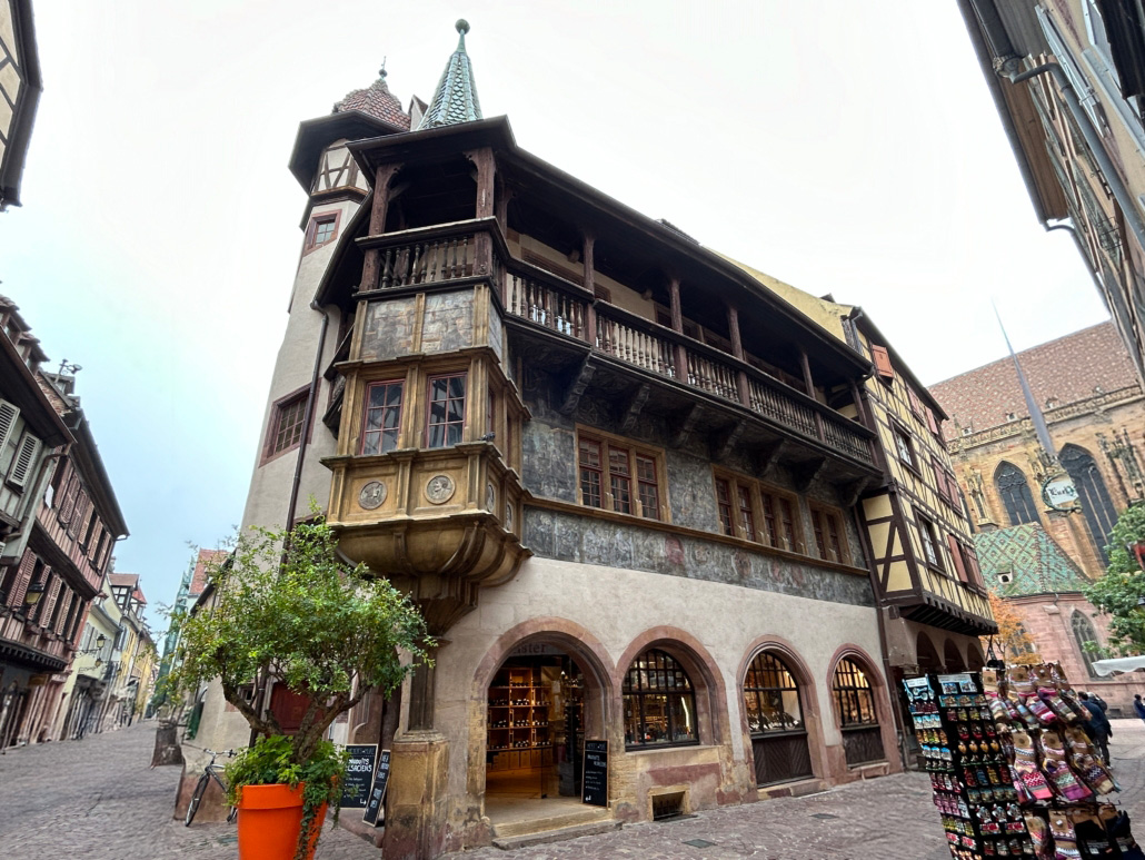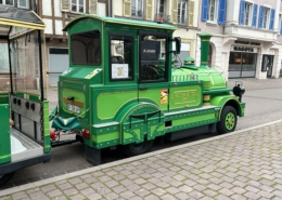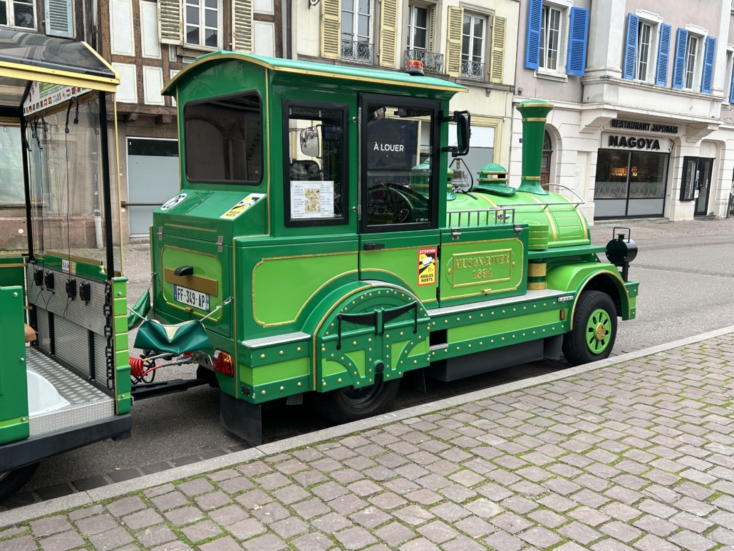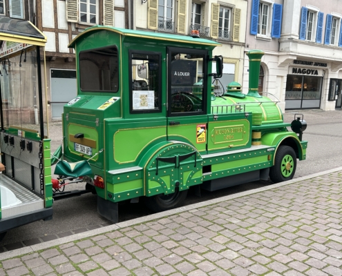 Heute steht Colmar zu Fuss auf dem Programm. Wir nehmen den Bus A in die Stadtmitte. Wir wollen auf den grünen Zug. Wenn wir uns etwas beeilt hätten, und schneller um die Ecke geschaut hätten, hätten wir den Zug um 10:30 Uhr erreicht. So mussten wir bis zur nächsten Abfahrt um 11 Uhr warten. Der Zug fuhr viel auf Pavés, so dass man die Stimme auf dem Kopfhörer kaum verstanden hat, aber so haben wir doch einige Sehenswürdigkeiten gesehen und konnten anschliessend zu Fuss zurück, um Fotos zu machen.