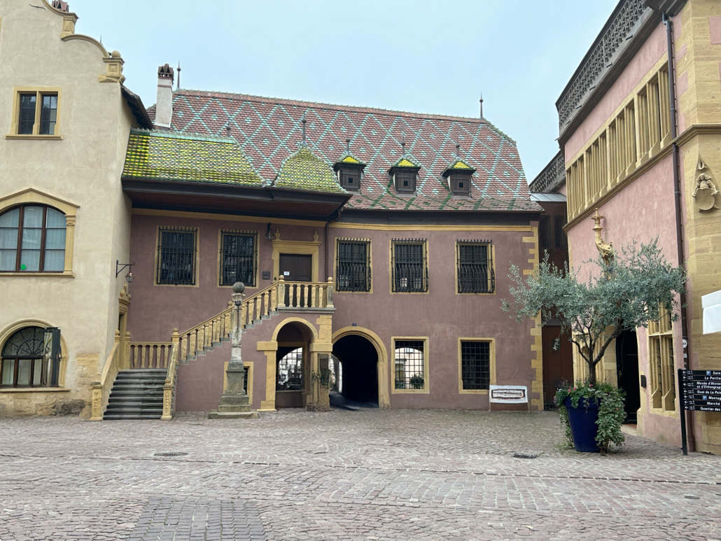 Auf dem Weg nach Colmar legen wir in Obernai Halt ein. Der Städtlieingang ist ganz klein und verwachsen. Wir spazieren durch die malerischen Gassen. Es gibt einige Shop, die vermutlich das ganze Jahr Weihnachtsdekoration anbieten.