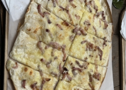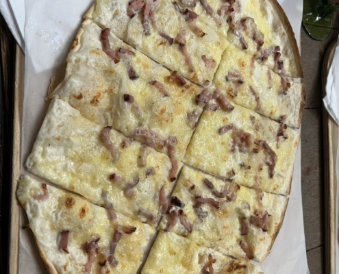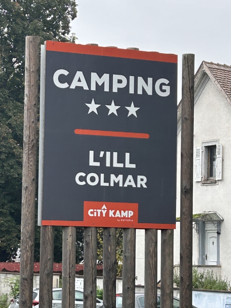 In der Markthalle haben wir in der Terrasse du Marché (allerdings drinnen) je einen Flammkuchen bestellt. Wir schlenderten weiter durch Colmar und finden ein Kaffee, wo es Café viennoise gibt. Der Wetterbericht hatte ab 15 Uhr Regen vorhergesagt. Der Regen setzt ein, als wir auf dem Rückweg (ca. 2,5 km) zum Campingplatz sind.