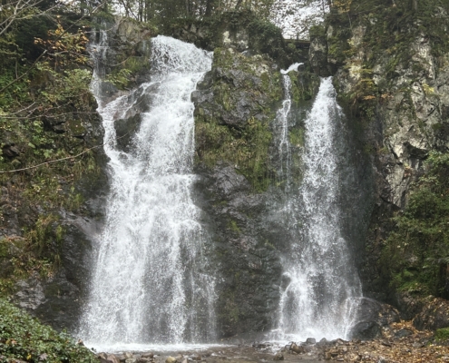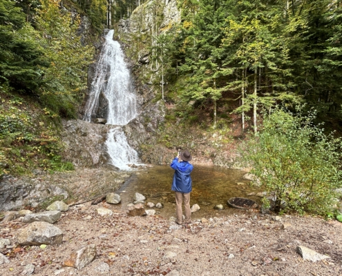 Unser Ziel heute sind die Vogessen. Wir machen Halt am Cascade du Heidenbad und später am Cascade du Bockloch. Beide Wasserfälle sind beeindruckend und die frische Luft tut gut und der Wald glänzt von den Regentropfen. Es ist immer wieder beeindruckend, welche Gewalt das Wasser hat.