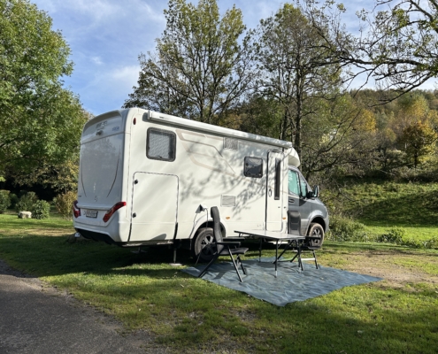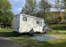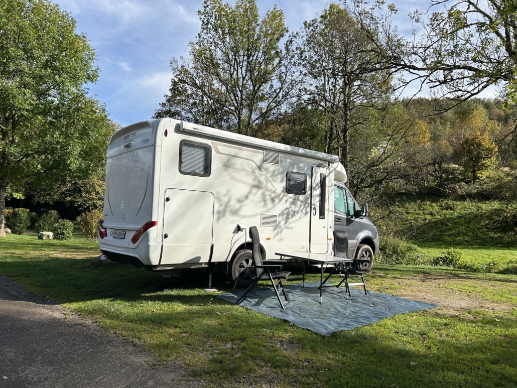 Um 14 Uhr erreichen wir den Camping Domaine de Champé ***** in Bussang, wo wir den sonnigsten Stellplatz auswählen und den Tag entspannt ausklingen lassen.