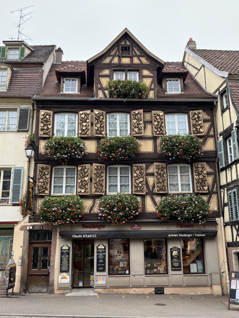Der nächste Besichtigungspunkt ist Riquewihr. Alle Geschäfte haben offen, es hat ziemlich viele Touristen. Wir bummeln durch das schmucke Städtchen und kehren in einem Salon de Thé ein bevor wir weiter zum Campingplatz L’Ill *** in Colmar fahren.