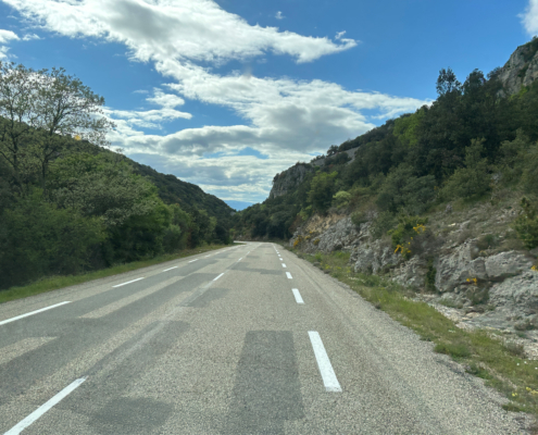 Heute kaufen wir nur 1 Baguette (€ 1.40). Unser heutiges Ziel: Pont d’Arc. Die Strecke ist diesmal etwas kürzer.