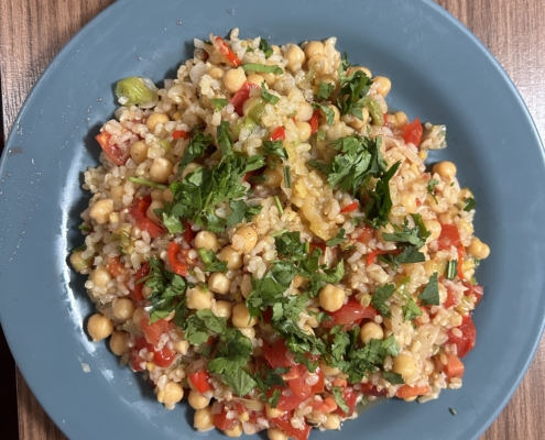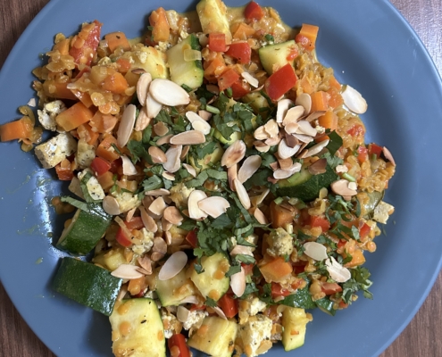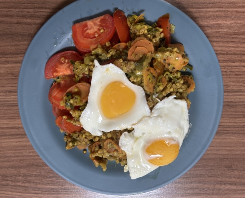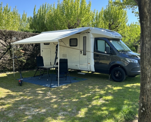 Zuerst rollen wir Sonnendach aus, legen den Teppich vor den Camper und stellen Tisch und Stühle auf. Besonders freuen wir uns, unseren neu angefertigten Küchenanbau vom Schreiner einzuweihen – endlich mehr Abstellfläche zum Kochen und Vorbereiten!