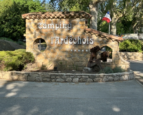Die Fahrt verläuft reibungslos. An der ersten Mautstelle bezahlen wir € 54.- Wegen einer Staumeldung weicht unser Navi auf Nebenstrassen aus und lotst uns später auf die A7 (Lyon-Marseille). Dort entrichten wir eine Péage von € 8.20. Die Strecke führt uns rund 35 Minunten durch eine eindrucksvolle, gebirgige Landschaft. Gegen 16:40 Uhr erreichen wir unseren Campingplatz L’Aradechois in Vallon-Pont-d’Arc.